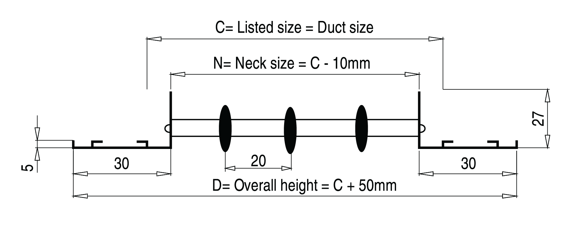 - Có thể lắp kèm van điều chỉnh lưu lượng gió, lưới lọc bụi hoặc lưới chắn côn trùng.