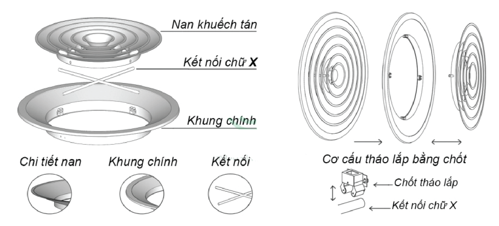 - Nan khuếch tán bao gồm 4 đĩa làm bằng nhôm tấm.