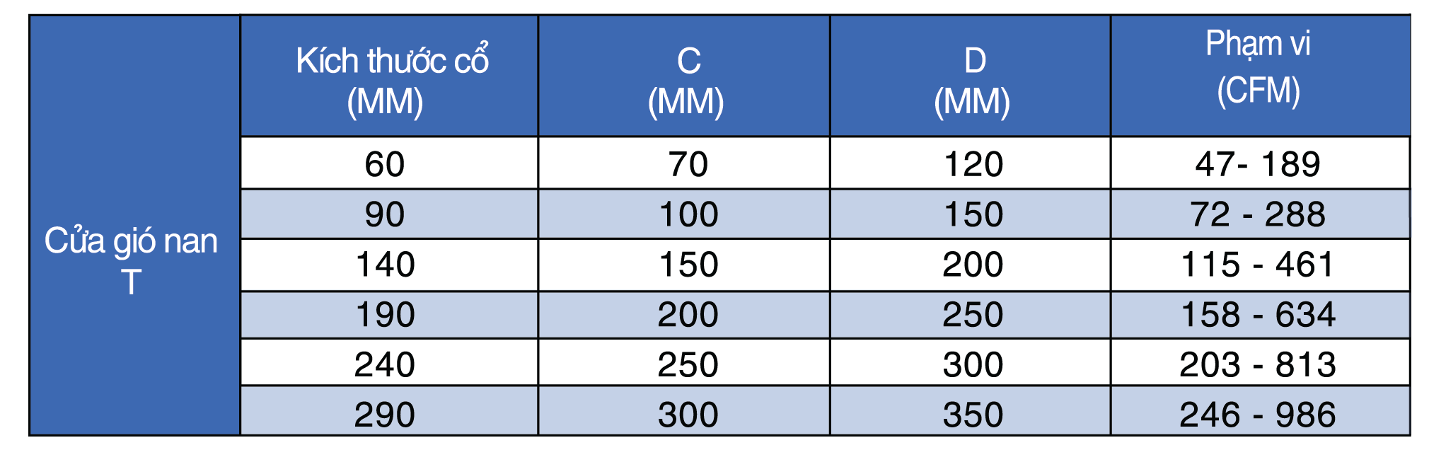 - Có thể lắp kèm van điều chỉnh lưu lượng gió hoặc lưới lọc bụi.