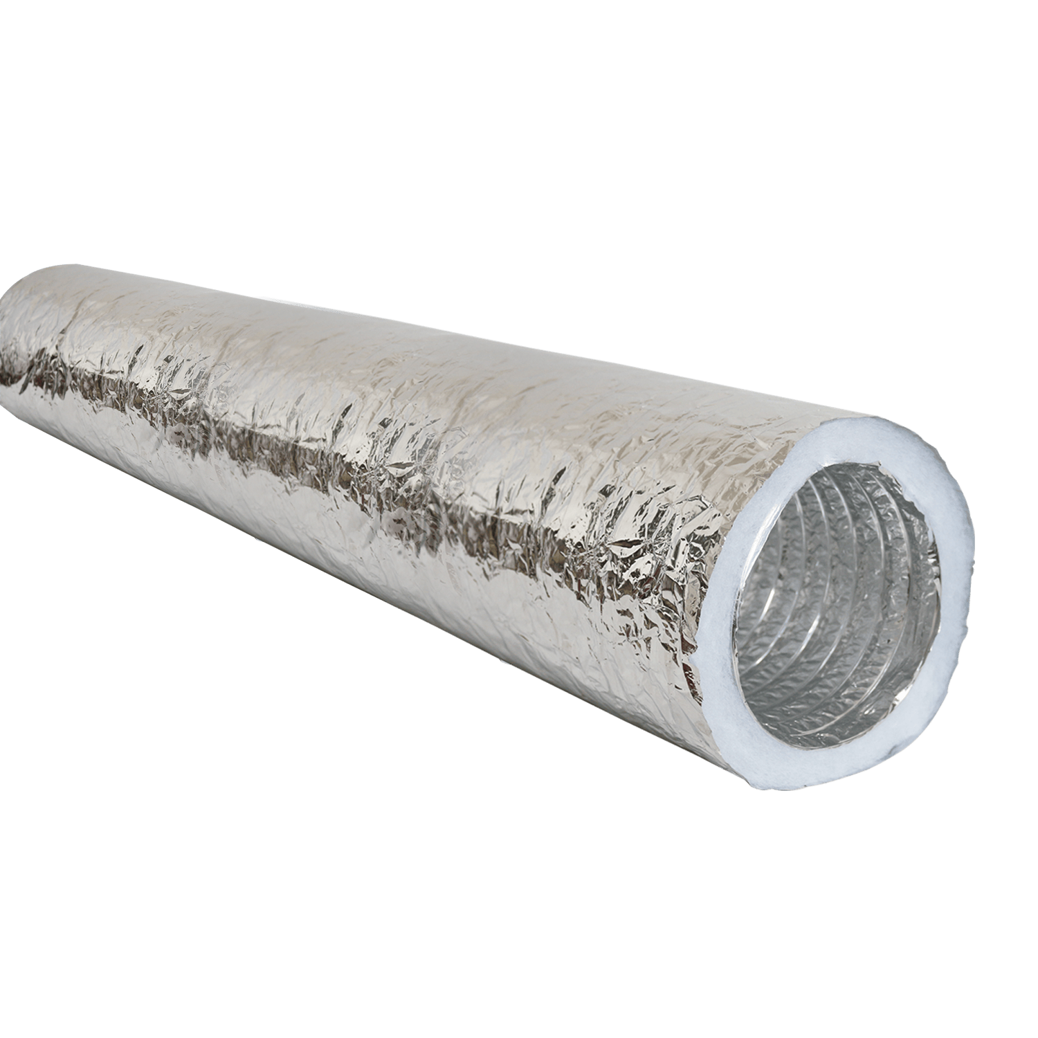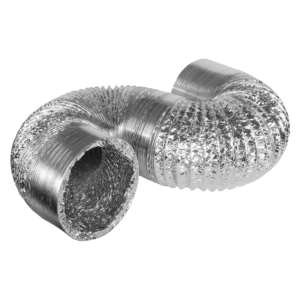 Ống gió không bảo ôn 2lớp àl loại ống nhôm không bảo ôn được sản xuất ừt 02 lớp nhôm + polyester (ALU + PET) dày 0,023 mm có độ đàn hồi và dẻo dai nhờ gắn dây thép tăng cường.