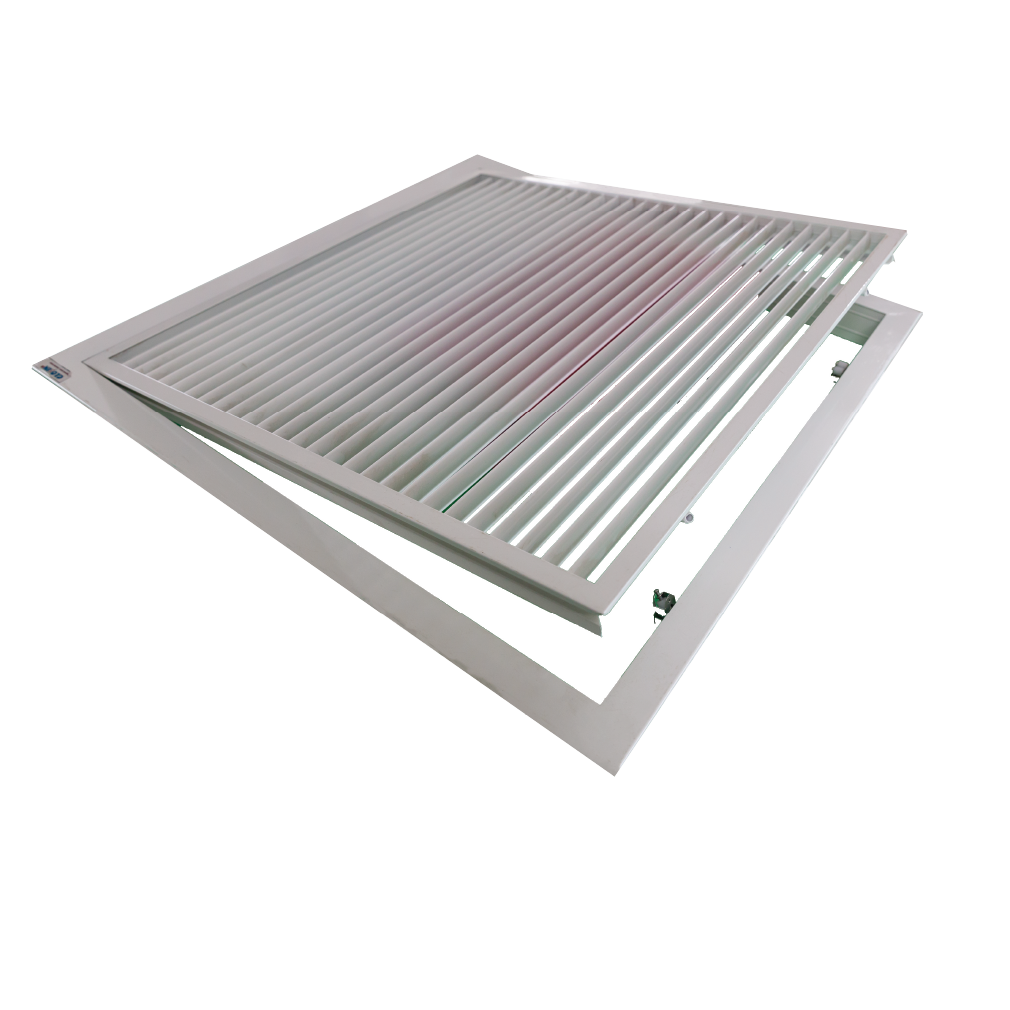Cửa có khung và lõi tách riêng biệt, giúp dễ dàng tháo lắp và bảo trì. Cửa gió này bao gồm hai loại chính: cửa gió hai khung nan bầu dục và cửa gió hai khung nan T.